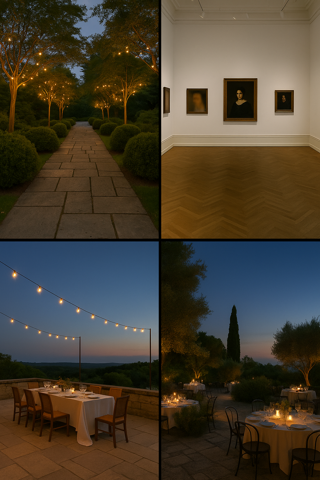This look belongs to places where fashion becomes emotion—think twilight garden parties, art gallery previews, terrace dinners under the stars, or cinematic entrances to open-air soirées. It’s graceful, but not fragile. Confident, yet composed.