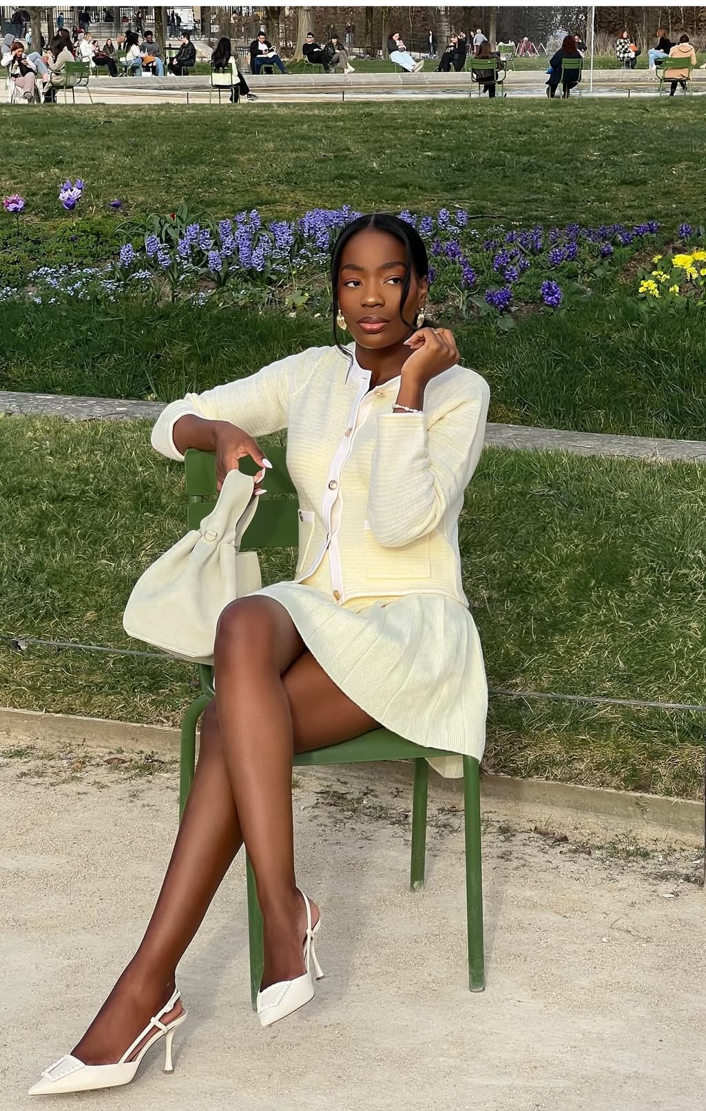 There’s a softness in the way Armelle Brown dresses—like sunlight filtering through lace curtains. Her buttercream co-ord doesn’t demand attention, it earns it slowly, with thoughtful details, quiet structure, and the kind of ease only spring can bring.