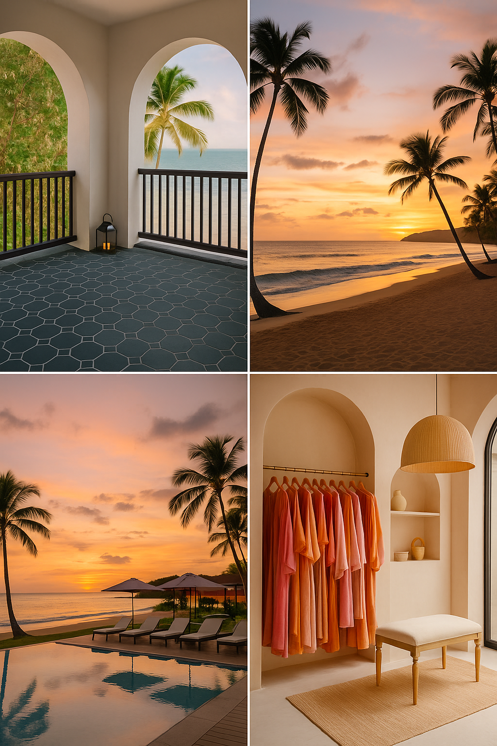 This look is ideal for women who seek refined expression through subtle drama and luxurious color. It suits vacation evenings in tropical destinations, elevated garden dinners, resort celebrations, sunset cocktail parties, and any setting where effortless sophistication is celebrated.