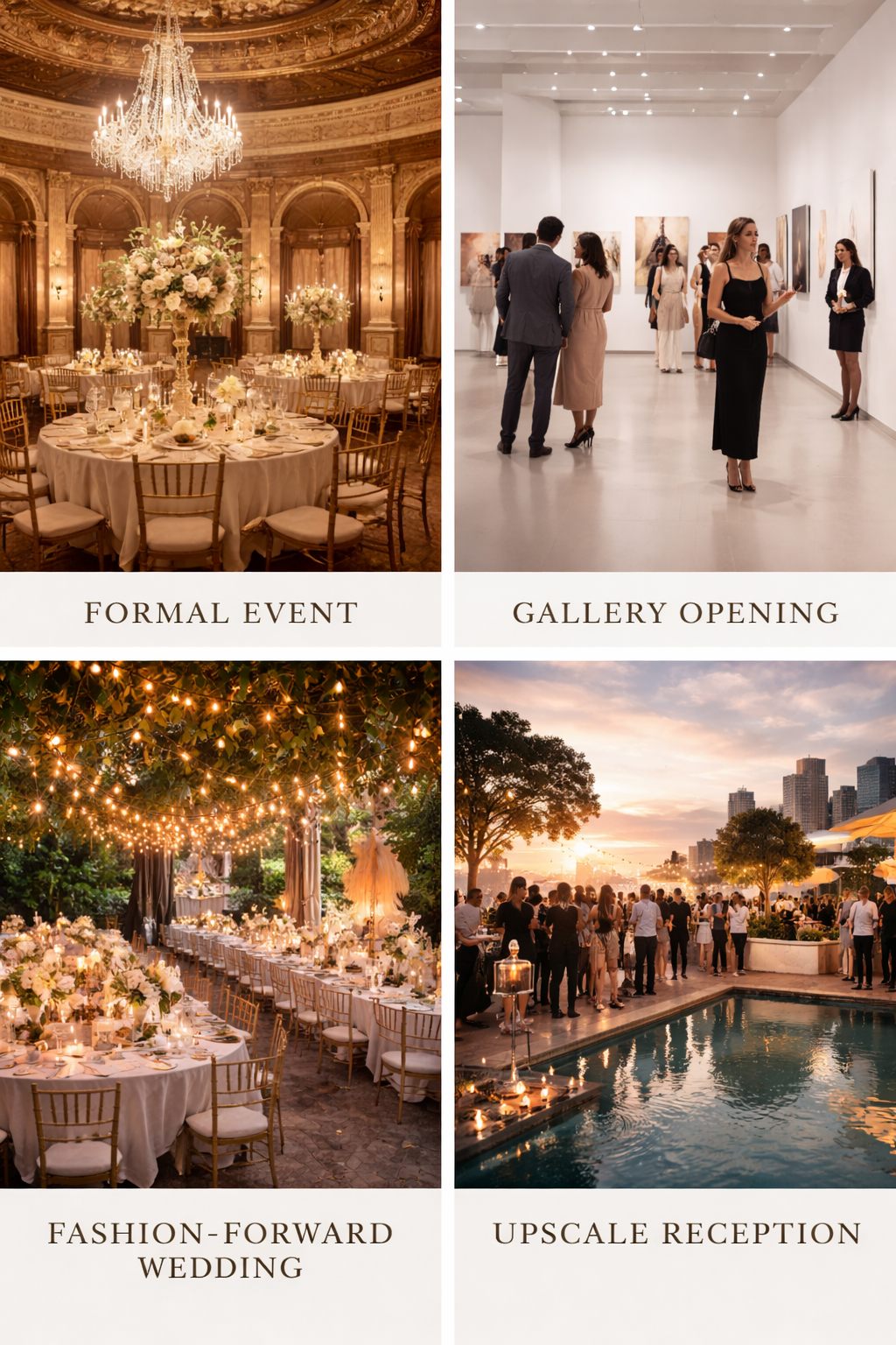This look is ideal for formal events, gallery openings, fashion-forward weddings, upscale evening receptions, and editorial-inspired occasions. It suits someone who gravitates toward clean lines, sculptural silhouettes, and understated luxury. Perfect for moments that call for confidence, elegance, and quiet impact without excess.