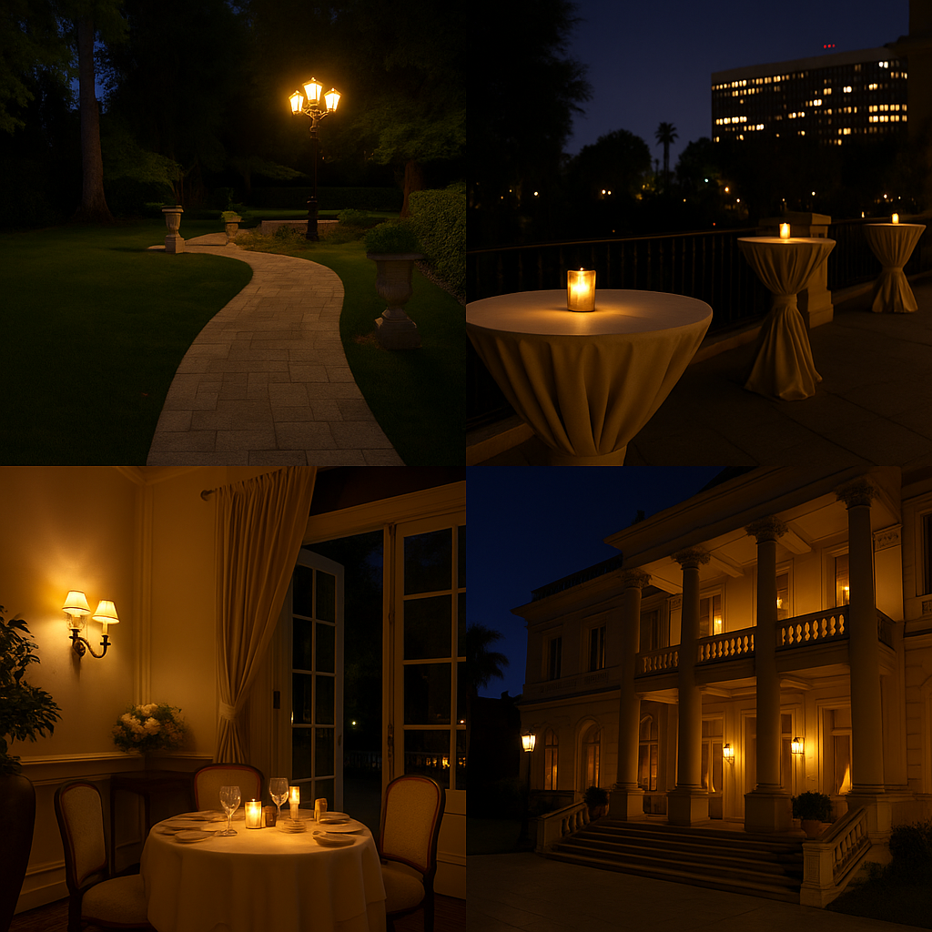 Her beauty look is equally thoughtful. Styled in soft, voluminous waves, her hair mirrors the romantic quality of the dress while maintaining a polished finish. Makeup enhances her natural features without becoming overpowering. A glossy lip, radiant skin, and carefully placed highlight allow her face to glow against the evening light. Everything works together harmoniously, making the look cohesive from top to bottom.