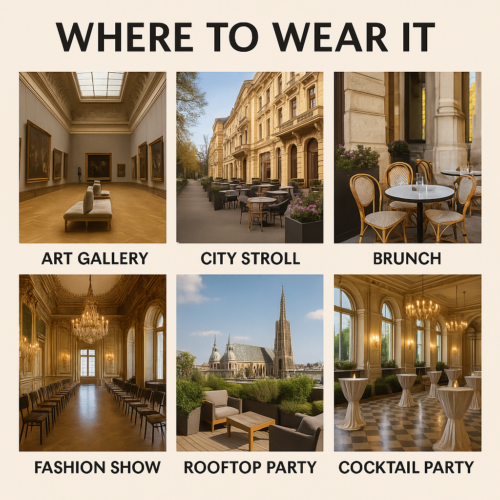This isn’t the kind of outfit you keep tucked away for “someday.” It’s the kind you plan your day around. Bold, structured, and unmissable—it deserves settings that match its energy.