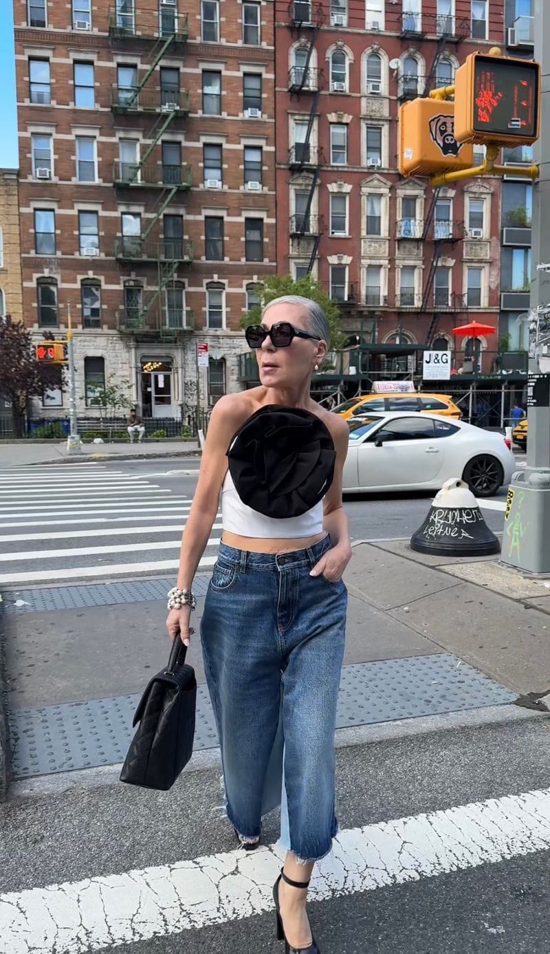 Lisa Corbo doesn’t just get dressed, she composes. In a look built on contrast and carried with intention, she proves that true style isn’t about matching pieces; it’s about mastering balance. When structure flirts with softness, and denim is treated like design, the result is more than fashion—it’s a visual philosophy.