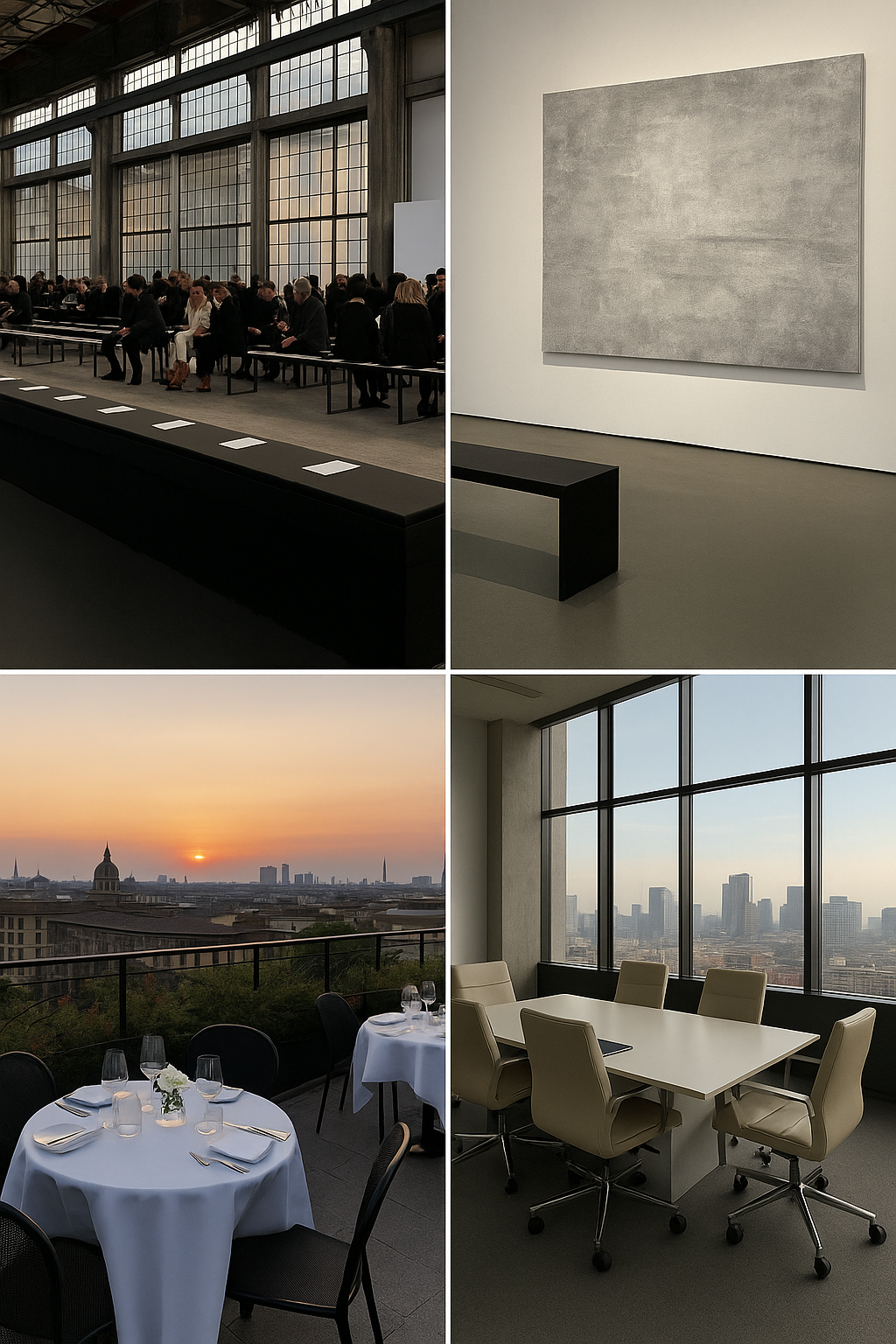 - Modern gallery openings where textures and clean lines mirror artistic statements