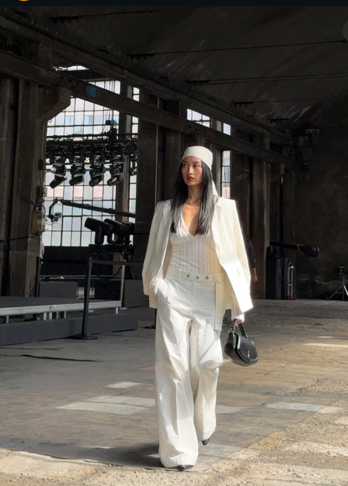 Thanya’s look is not just an outfit but a reflection of intent. She demonstrates how monochrome can feel alive when texture, silhouette, and accessories are layered with precision. The relaxed headscarf, tailored suit, and romantic lace create a narrative that is both elegant and quietly rebellious. In Milan, she didn’t just show up in white; she showed how white could be written as a story of power and ease.