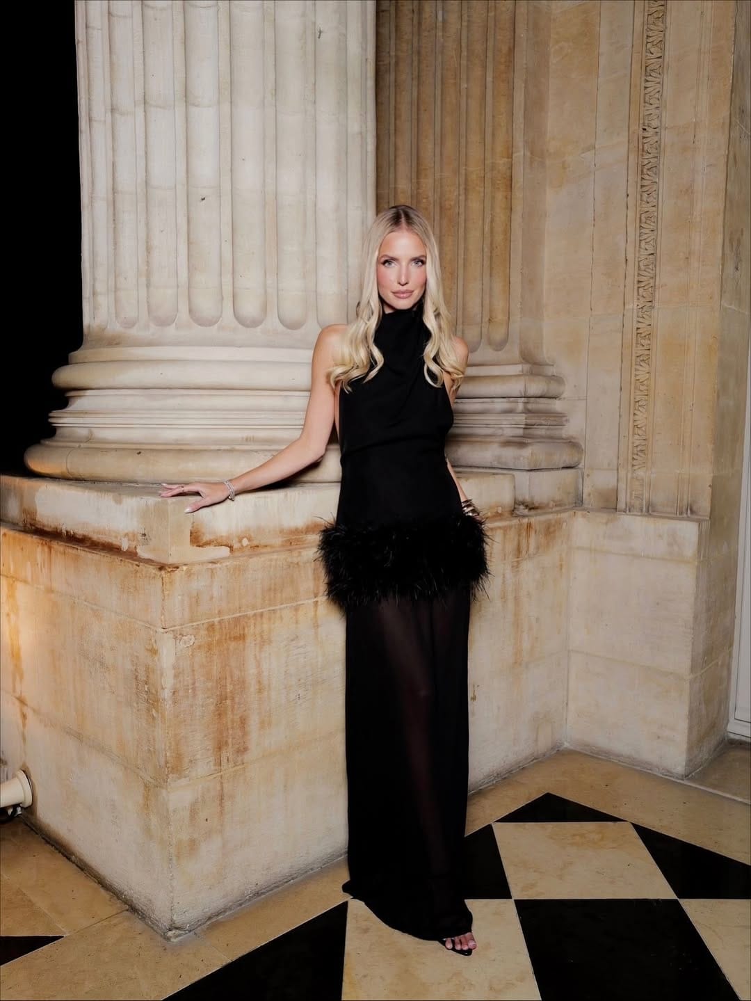 There are moments in fashion when simplicity becomes the strongest possible statement, and Leonie Hanne’s latest look is one of them. Her ensemble blends refined minimalism with textural drama, creating an image that is both striking and impeccably controlled. The visual story begins with a silhouette that balances softness and structure, illuminated by the rich architectural backdrop surrounding her. It is a look that draws the eye not through excess, but through the confidence of perfect restraint and a masterful understanding of proportion.
