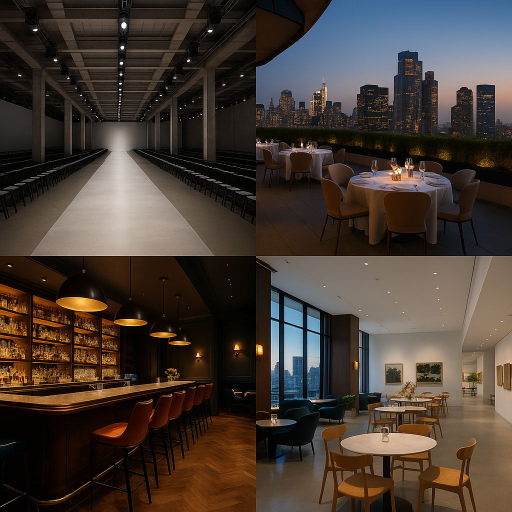 This is a look designed for spaces that thrive on bold statements: fashion weeks where expression reigns supreme, art gallery openings where couture meets installation, cocktail evenings where sparkle catches and refracts in low lighting, or editorial shoots where color and personality need to take the lead.