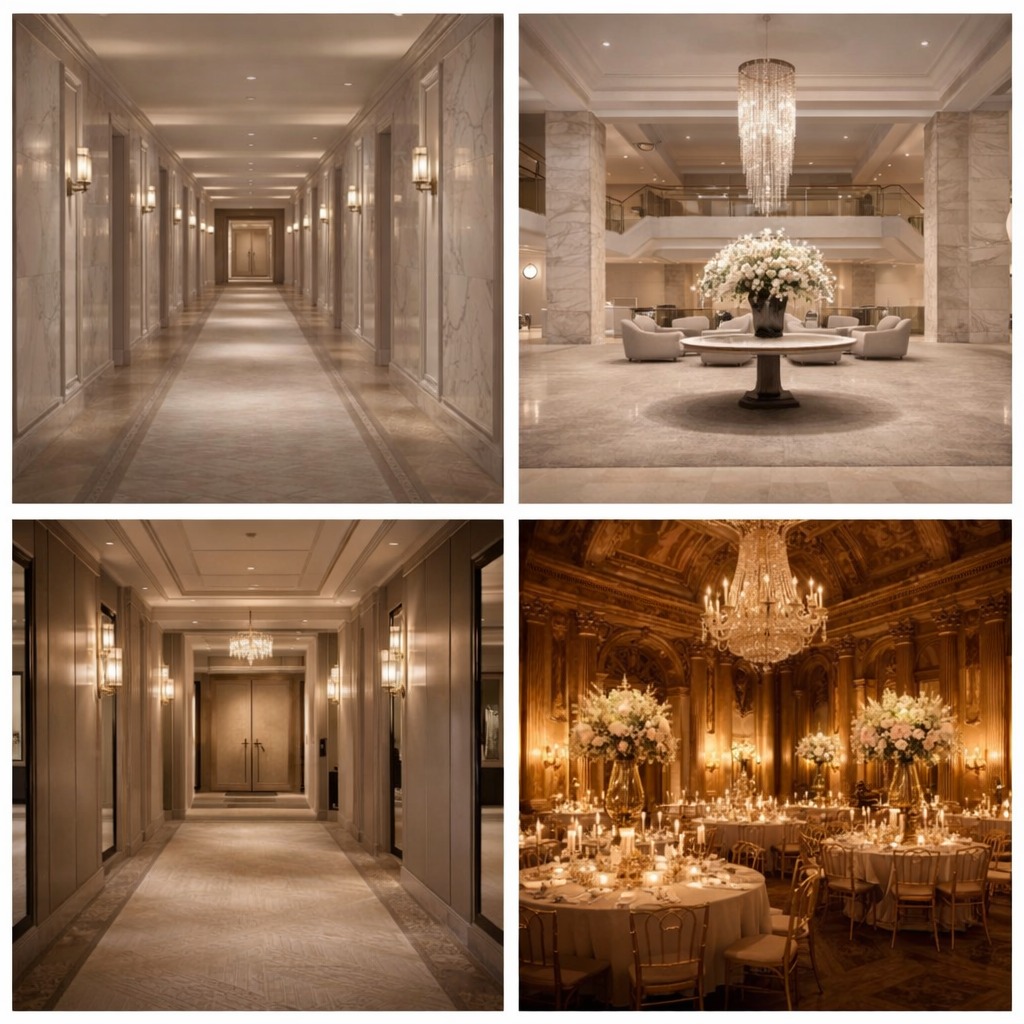 Styling choices further elevate the ensemble. Hair is sleek and pulled back, allowing the dress to remain the focal point. This clean styling underscores the architectural nature of the gown and prevents visual competition. Accessories are kept minimal, with understated jewelry that complements rather than distracts. The absence of excessive adornment reinforces the idea that the dress itself carries enough presence to stand alone.