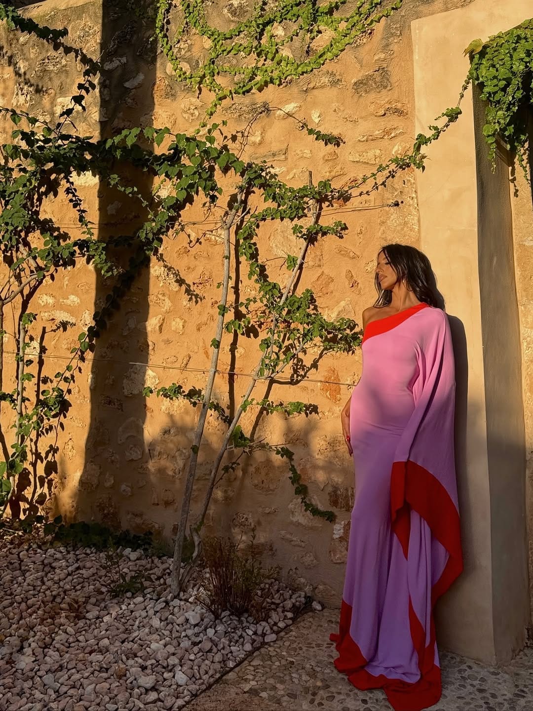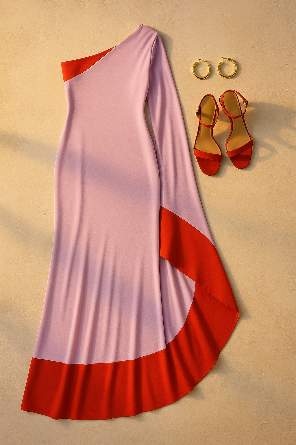 This look is ideal for readers who appreciate relaxed elegance with a strong artistic touch. It suits coastal dinners, sunset celebrations, destination events, garden parties, or intimate gatherings where natural light can interact beautifully with soft draping and expressive color.
