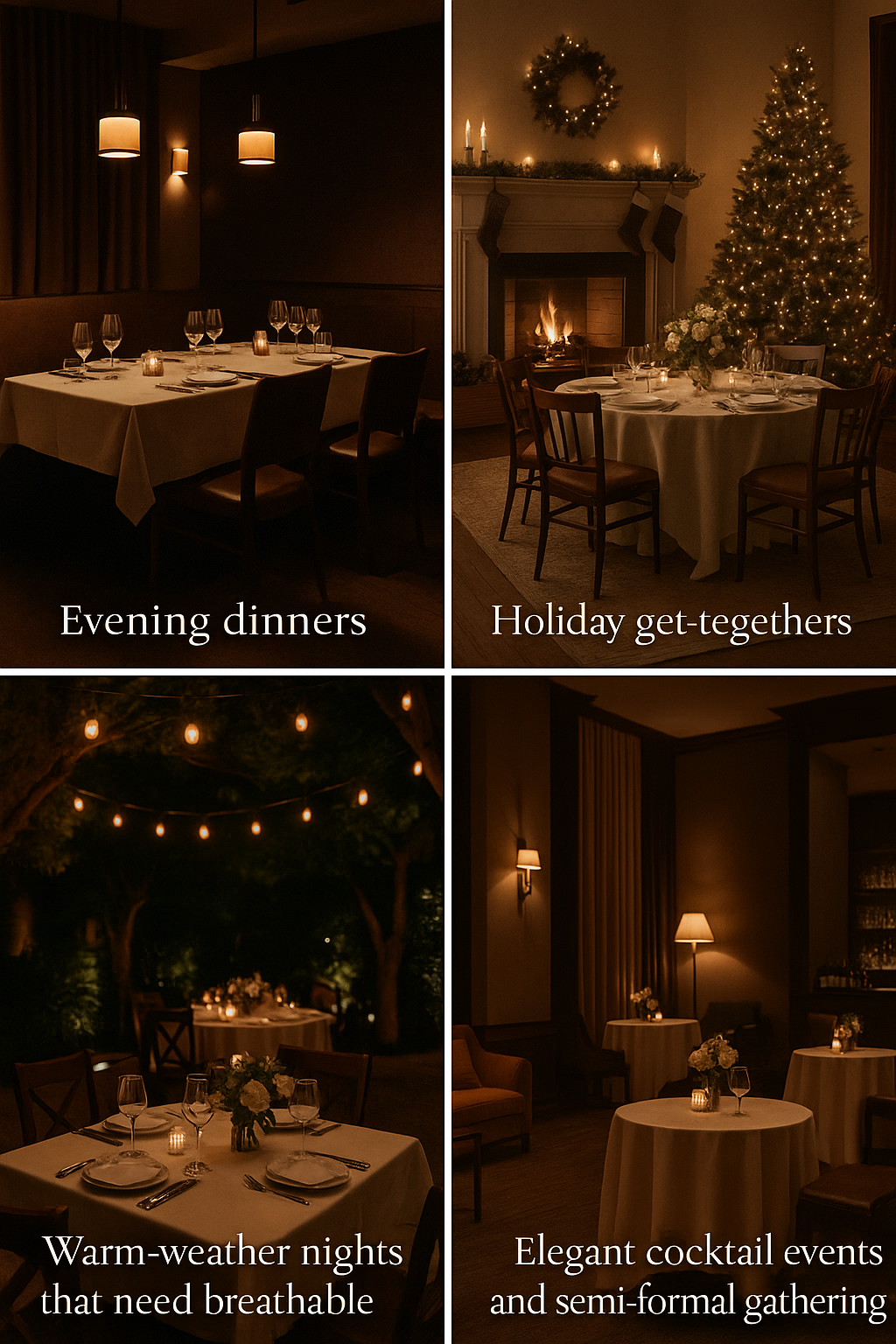 • Warm-weather nights that need breathable sophistication