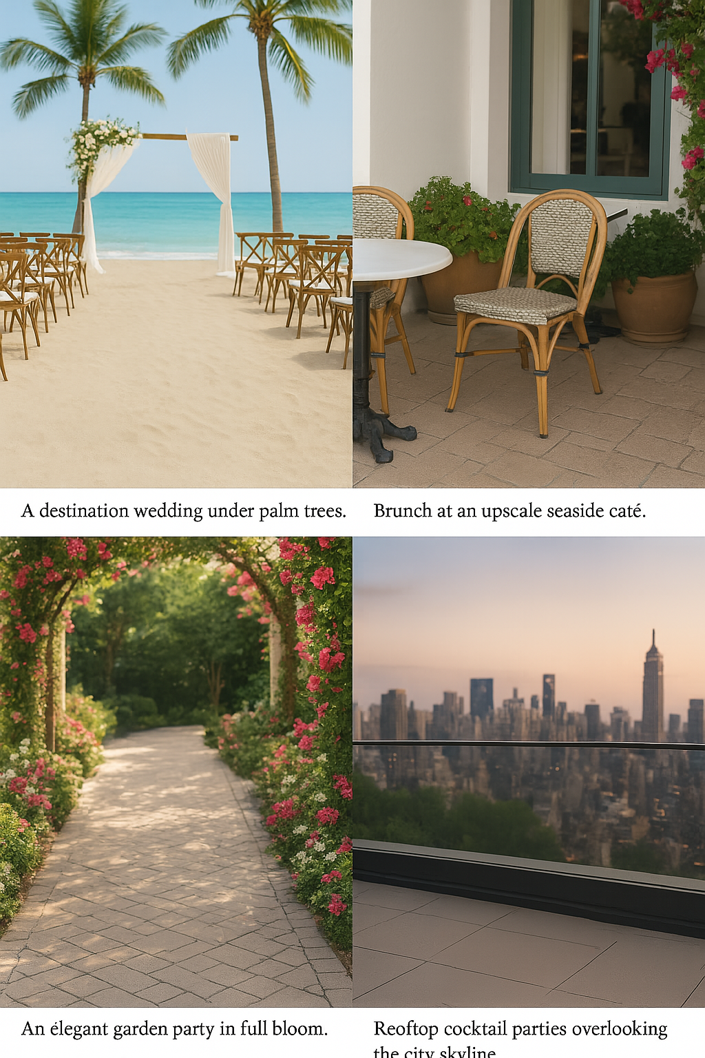 The aesthetic of this look captures the essence of luxurious summer leisure—a sophisticated yet carefree blend perfect for garden weddings, brunches by the coast, or sunset gatherings. The atmosphere created by this ensemble is fresh, joyful, and irresistibly chic.