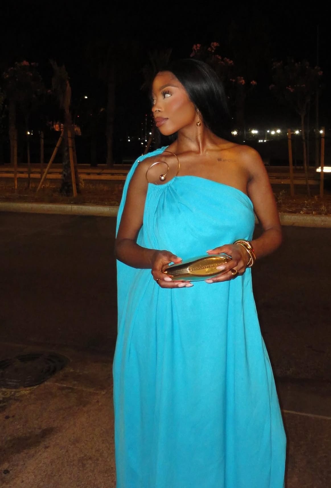 This isn’t a fleeting fashion moment. This is an image etched in the minds of everyone lucky enough to witness it. Wunmi Bello in turquoise, golden, and unforgettable, this is truly a blueprint for modern glamour. A look that redefines what it means to shine.